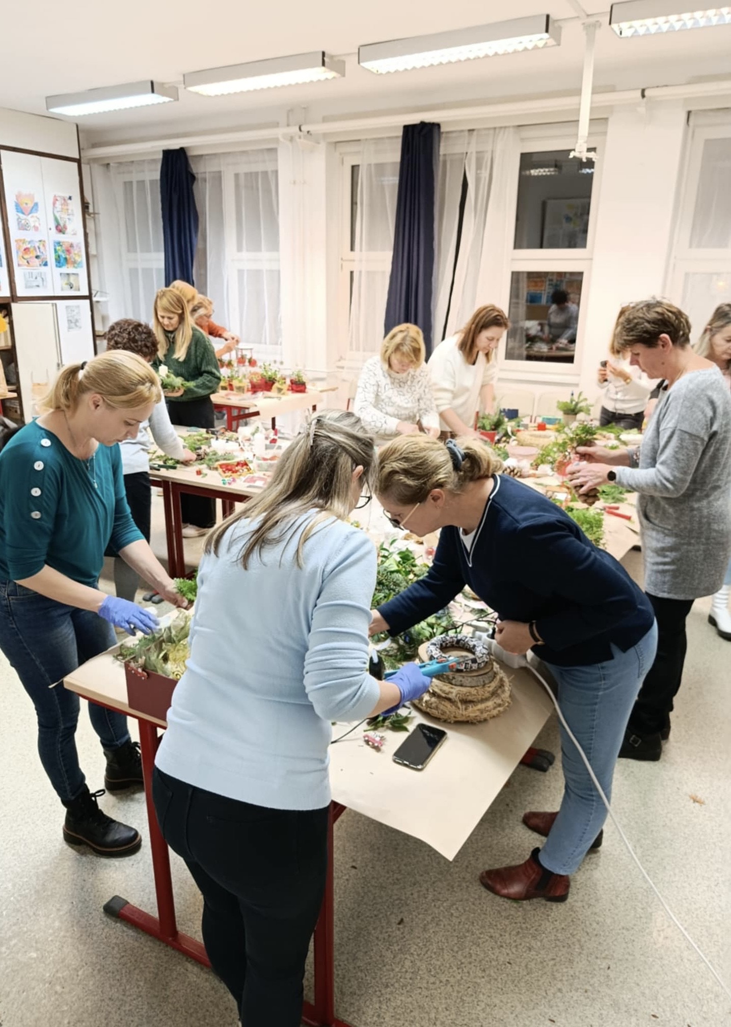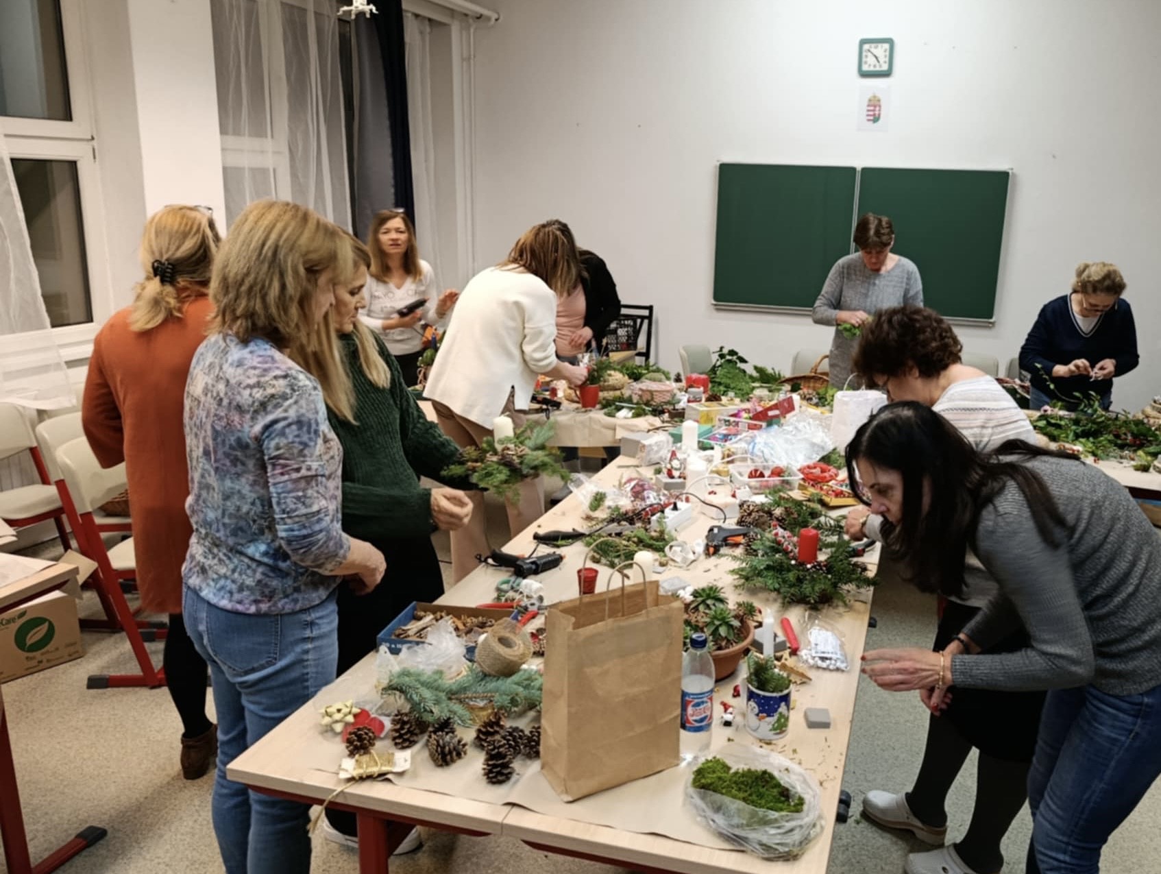 Az alsós tanítók Szmik Györgyné Edit koordinálásával és irányításával kézműves foglalkozást tartottak csütörtök délután. Karácsonyi asztalidíszeket készítettek a szombati Luca-napi vásárra.