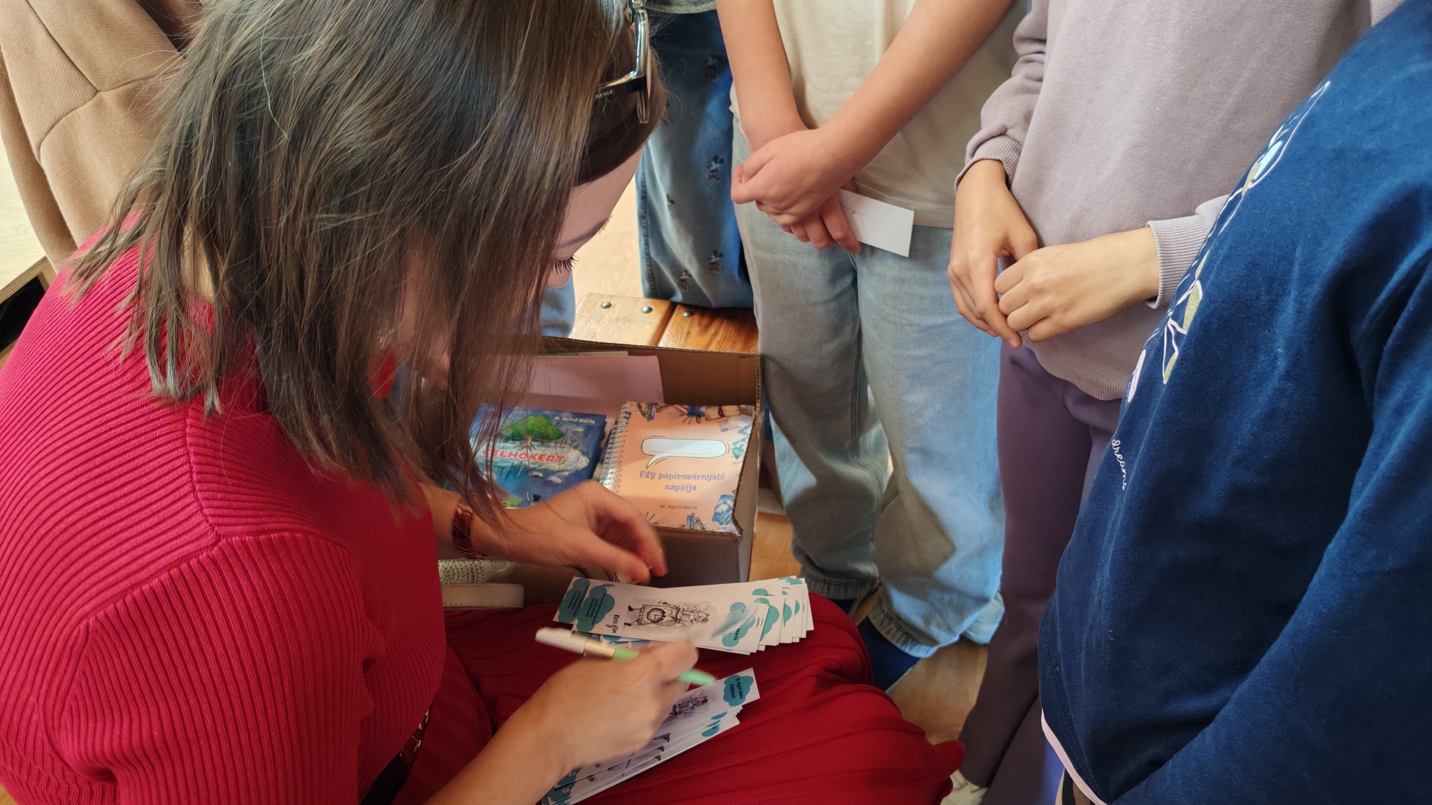 Az írónő könyveiből a gyerekek dedikált példányt vásárolhattak az előadás után.